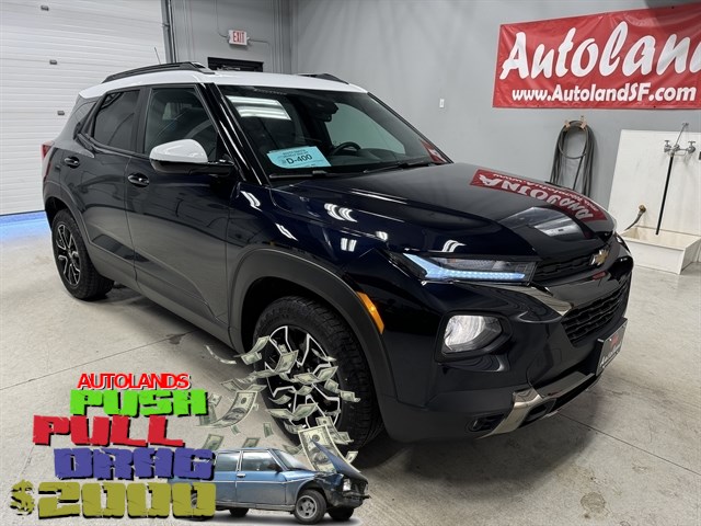 low miles, only 24893 miles, **ONE OWNER**, ***CLEAN CARFAX***, **LEATHER**, **MOONROOF**, BLUETOOTH, ALL BOOKS AND KEYS, **REMOTE START**, **Back-Up Camera**, **POWER LIFTGATE**, **HEATED SEATS**, TrailBlazer ACTIV, 1.3L Ecotec Turbo DOHC SIDI w/VVT, 9-Speed Automatic, AWD, Midnight Blue Metallic, Jet Black With Arizona Accents Artificial Leather, 1 Type-A & 1 Type-C USB Charging-Only Ports, 120-Volt Power Outlet, 2-Way Power Driver Lumbar Seat Adjuster, 4-Wheel Disc Brakes, 6-Speaker Audio System Feature w/Amplifier, 8`` Diagonal Color Touchscreen Display, 8-Way Power Driver Seat Adjuster, ABS brakes, AM/FM radio, Apple CarPlay/Android Auto, Auto High-beam Headlights, Cabin Humidity Sensor, Compass, Convenience Package, Driver & Front Passenger Illuminated Vanity Mirrors, Driver Confidence Package, Dual-Pane Panoramic Power Sunroof, Electronic Stability Control, Exterior Parking Camera Rear, Front fog lights, Hands-Free Power Programmable Liftgate, Heated door mirrors, Heated Driver & Front Passenger Seats, Inside Rear-View Auto-Dimming Mirror, Lane Change Alert w/Side Blind Zone Alert, Leather Shift Knob, Leather steering wheel, Overhead console, Preferred Equipment Group 1SA, Radio: Chevrolet Infotainment 3 System, Rear Cross Traffic Alert, Rear Park Assist, Remote keyless entry, Roof rack: rails only, Single-Zone Auto Climate Control Air Conditioning, SiriusXM Radio, Split folding rear seat, Steering wheel mounted audio controls, Summit White Two-Tone Roof, Sun & Liftgate Package, Telescoping steering wheel, Traction control, Wheels: 17`` High Gloss Black Machined Aluminum, Wireless Apple CarPlay/Android Auto. *THIS VEHICLE COMES WITH TWO KEYS, FULL SET OF FLOOR MATS, OWNERS MANUAL AND A FULL TANK OF GAS! A LIMITED 3 MONTH 3,000 MILE WARRANTY IS INCLUDED. SOME VEHICLES MAY HAVE REMAINING FACTORY WARRANTY – CONTACT US FOR DETAILS. AUTOLAND DOES PROVIDE A COMPLETE CARFAX HISTORY ON ALL VEHICLES BY REQUEST. Located in Sioux Falls SD, and serving Mitchell, Yankton, Brookings, Dell Rapids, Lennox, Brandon, Harrisburg, Canton, Hartford and surrounding areas. |