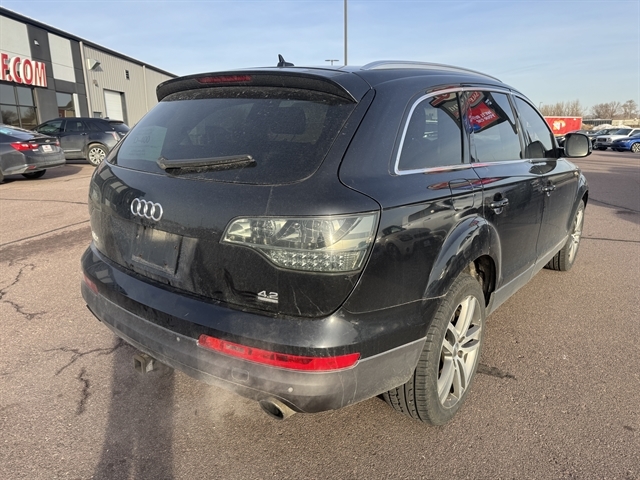2007 Audi Q7 4.2 Premium 4D Sport Utility **LOCAL TRADE IN**, **LEATHER**, **MOONROOF**, **POWER LIFTGATE**, **HEATED SEATS & STEERING WHEEL**, Q7 4.2 Premium quattro, 4.2L V8 DOHC 40V, 6-Speed Automatic with Tiptronic, quattro, Phantom Black Pearl Effect, Black w/Premium Cricket Leather Seating Surfaces, 14 Speakers, 4-Wheel Disc Brakes, ABS brakes, Air Conditioning, Aluminum Wheels, AM/FM w/In-Dash 6CD Chgr w/SIRIUS Satellite, Compass, Fully automatic headlights, Garage door transmitter: HomeLink, Heated door mirrors, Heated front seats, Heated rear seats, Heated steering wheel, Memory seat, Navigation System, Outside temperature display, Power 3rd-Row Moonroof, Power door mirrors, Power driver seat, Power Liftgate, Power moonroof, Power passenger seat, Premium Cricket Leather Seating Surfaces, Rain sensing wipers, Rear air conditioning, Remote keyless entry, Speed control, Steering wheel memory, Steering wheel mounted audio controls, Traction control. This vehicle is being SOLD AS IS due to age and miles. It may qualify for an extended warranty.