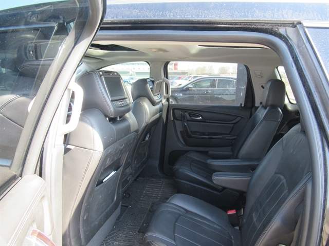 ***CLEAN CARFAX***, **NAVIGATION**, **LOCAL TRADE IN**, **REAR DVD**, **LEATHER**, **MOONROOF**, BLUETOOTH, ALL BOOKS AND KEYS, **REMOTE START**, **Back-Up Camera**, **QUAD SEATS**, **POWER LIFTGATE**, **HEATED/COOLED SEATS**, **HEATED SEATS & STEERING WHEEL**, Traverse Premier, 3.6L V6 SIDI, 6-Speed Automatic, AWD, Mosaic Black Metallic, Ebony Leather, 20`` x 7.5`` Machined Aluminum Wheels, 4-Wheel Disc Brakes, 7-Passenger Seating (2-2-3 Seating Configuration), 8-Way Power Driver Seat, 8-Way Power Passenger Seat Adjuster, ABS brakes, AM/FM radio: SiriusXM, Auto-Dimming Inside Rear-View Mirror, Automatic temperature control, Bluetooth® For Phone, Body-Color Moldings w/Chrome Bodyside Accents, Bose Premium 10-Speaker Audio System Feature, CD player, Color Touch Navigation System, Compass, Dual SkyScape 2-Panel Power Sunroof, Electronic Stability Control, Enhanced Driver Information Center, Exterior Parking Camera Rear, Forward Collision Alert & Lane Departure Warning, Front dual zone A/C, Front Fog Lamps, Garage door transmitter, Heated & Cooled Driver & Front Passenger Seats, Heated door mirrors, Heated Steering Wheel, Interior Wood Grain Center Stack & Interior Trim, Leather-Wrapped Steering Wheel, Memory Package, Navigation System, NavTraffic, Outside temperature display, Perforated Leather-Appointed Seat Trim, Power Windows w/Driver Express-Up & Down, Power-Folding Heated Outside Mirrors, Preferred Equipment Group 1LZ, Radio: Chevrolet MyLink w/Navi & Rr Entertainment (DISC), Rear air conditioning, Rear Audio System Controls, Rear Park Assist, Rear Power Liftgate, Rear Seat DVD Entertainment System, Remote keyless entry, Remote Vehicle Start, Roof rack: rails only, Side Blind Zone Alert & Rear Cross Traffic Alert, Steering wheel mounted audio controls, Telescoping steering wheel, Traction control, Tri-Zone Automatic Climate Control, Universal Home Remote, Variable Effort Power Steering.