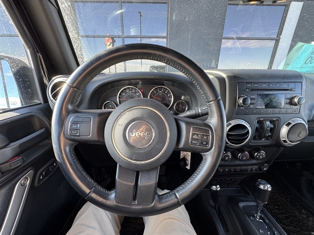 **LOCAL TRADE IN**, **LEATHER**, ALL BOOKS AND KEYS, **HEATED SEATS**, Wrangler JK Unlimited Sahara, 4D Sport Utility, 3.6L V6 24V VVT, 5-Speed Automatic, 4WD, Black Clearcoat, Black Leather, 18`` x 7.5`` Polished Satin Carbon Wheels, 4-Wheel Disc Brakes, 8 Speakers, ABS brakes, Air Conditioning, AM/FM radio: SiriusXM, Compass, Front fog lights, Fully automatic headlights, Heated Front Seats, Leather Trimmed Bucket Seats, Outside temperature display, Power door mirrors, Power windows, Remote keyless entry, Security system, Speed control, Split folding rear seat, Steering wheel mounted audio controls, Sunrider Soft Top, Traction control.