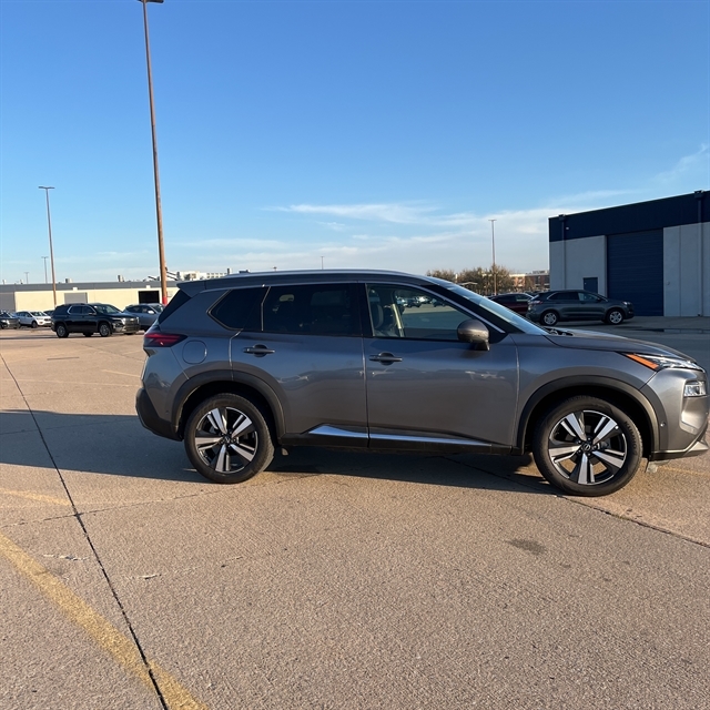 2023 Nissan Rogue SL 4D Sport Utility ***CLEAN CARFAX***, **NAVIGATION**, **LEATHER**, BLUETOOTH, ALL BOOKS AND KEYS, **REMOTE START**, **Back-Up Camera**, **POWER LIFTGATE**, **ADAPTIVE CRUISE CONTROL**, **HEATED SEATS & STEERING WHEEL**, **APPLE CARPLAY/ ANDROID AUTO**, **PANORAMIC ROOF**, Rogue SL, 1.5L I3 Turbocharged DOHC 12V LEV3-ULEV50 201hp, AWD, Gun Metallic, Charcoal w/Leather-Appointed Seat Trim, 19" Aluminum Alloy Wheels, 4-Wheel Disc Brakes, ABS brakes, Active Cruise Control, Air Conditioning, AM/FM radio: SiriusXM, Auto High-beam Headlights, Front, Side & Rear Sonar, Fully automatic headlights, Heated door mirrors, Heated Front Bucket Seats, Heated steering wheel, Leather-Appointed Seat Trim, Memory seat, Motion Activated Power Liftgate, NissanConnect featuring Apple CarPlay and Android Auto, Outside temperature display, Power door mirrors, Power driver seat, Power Liftgate, Power moonroof, Power passenger seat, ProPILOT Assist w/Navi-link, Radio: AM/FM NissanConnect w/Navigation, Rear Door Sunshades, Rear Parking Sensors, Remote keyless entry, Security system, SL Premium Package, Split folding rear seat, Steering wheel mounted audio controls, Traction control, Traffic Sign Recognition, Tri-Zone HVAC. *THIS VEHICLE COMES WITH TWO KEYS, FULL SET OF FLOOR MATS, OWNERS MANUAL AND A FULL TANK OF GAS! A LIMITED 3 MONTH 3,000 MILE WARRANTY IS INCLUDED. SOME VEHICLES MAY HAVE REMAINING FACTORY WARRANTY – CONTACT US FOR DETAILS. AUTOLAND DOES PROVIDE A COMPLETE CARFAX HISTORY ON ALL VEHICLES BY REQUEST. Located in Sioux Falls SD, and serving Mitchell, Yankton, Brookings, Dell Rapids, Lennox, Brandon, Harrisburg, Canton, Hartford and surrounding areas.