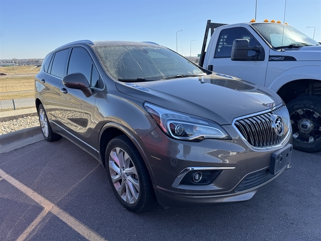 ***CLEAN CARFAX***, **LEATHER**, BLUETOOTH, **REMOTE START**, **Back-Up Camera**, **POWER LIFTGATE**, **HEATED SEATS & STEERING WHEEL**, Envision Premium I, 2.0L 4-Cylinder DGI DOHC VVT Turbocharged, AWD, Bronze Alloy Metallic, Ebony Leather, 4-Wheel Disc Brakes, ABS brakes, Air Conditioning, Blind spot sensor: warning, Bose Premium 7-Speaker System w/Amplifier, Compass, Driver 8-Way Power Seat Adjuster, Exterior Parking Camera Rear, Front Passenger 8-Way Power Seat Adjuster, Fully automatic headlights, Garage door transmitter, Heated door mirrors, Heated Driver & Front Passenger Seats, Heated rear seats, Lane Departure Warning System, Memory seat, Navigation System, Outside temperature display, Perforated Leather-Appointed Seat Trim, Power door mirrors, Power driver seat, Power Liftgate, Preferred Equipment Group 1SN, Radio: Buick IntelliLink AM/FM Stereo w/Navigation, Rain sensing wipers, Rear air conditioning, Single-Slot CD/MP3 Player, SiriusXM Satellite Radio, Speed control, Split folding rear seat, Steering wheel mounted audio controls, Traction control, Wheels: 19`` 10-Spoke Aluminum.