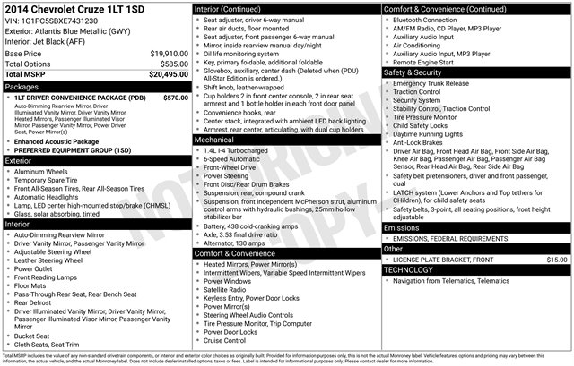 2014 Chevrolet Cruze 1LT 4D Sedan