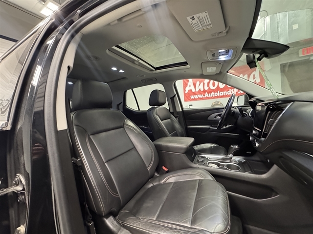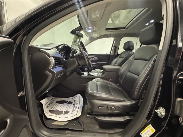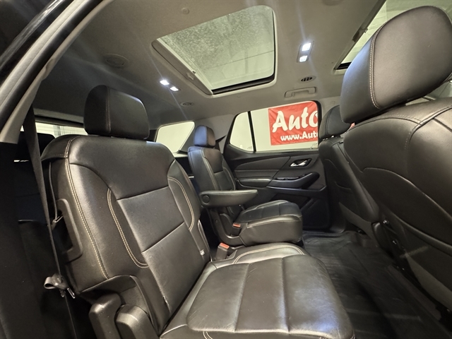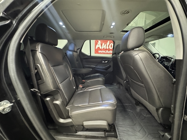 in Black and Jet Black Leather, ***CLEAN CARFAX***, **LEATHER**, **MOONROOF**, BLUETOOTH, ALL BOOKS AND KEYS, **REMOTE START**, **Back-Up Camera**, **QUAD SEATS**, **POWER LIFTGATE**, **HEATED SEATS**, Traverse 3LT, 3.6L V6 SIDI VVT, 9-Speed Automatic, AWD, Black, Jet Black Leather, 3rd row seats: split-bench, 4-Wheel Disc Brakes, 7-Passenger Seating (2-2-3 Seating Configuration), ABS brakes, AM/FM radio: SiriusXM, Apple CarPlay/Android Auto, Automatic Emergency Braking, Automatic Heated Steering Wheel, Automatic temperature control, Black Finish Grille (LPO), Black Fog Lamp Trim (LPO), Black Mirror Caps (LPO), Black Rear License Plate Applique (LPO), Blackout Package (LPO), Driver Confidence II Package, Dual SkyScape 2-Panel Power Sunroof, Electronic Stability Control, Following Distance Indicator, Forward Collision Alert, Front & Rear Black Bowtie Emblems (LPO), Front dual zone A/C, Front fog lights, Front Pedestrian Braking, Fully automatic headlights, Gloss Black Emblem Kit (LPO), Heated front seats, High-Intensity Discharge Headlights, IntelliBeam Auto High Beam Control Headlamps, Lane Keep Assist w/Lane Departure Warning, Leather steering wheel, Leather-Appointed Seat Trim, Outside temperature display, Overhead console, Power driver seat, Power Liftgate, Preferred Equipment Group 3LT, Radio: Chevrolet Infotainment 3 Plus System, Rear air conditioning, Roof rack: rails only, SiriusXM w/360L, Spoiler, Steering wheel mounted audio controls, Telescoping steering wheel, Traction control, Wheels: 20`` Gloss Black Painted Aluminum (LPO).