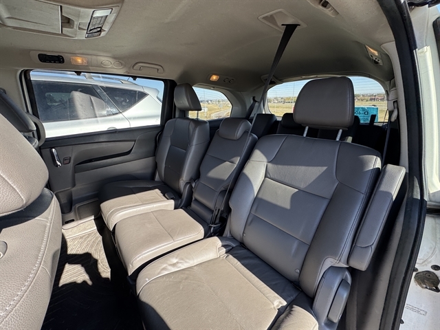 **ONE OWNER**, ***CLEAN CARFAX***, **LOCAL TRADE IN**, **REAR DVD**, **LEATHER**, **MOONROOF**, BLUETOOTH, **POWER LIFTGATE**, **HEATED SEATS**, Odyssey EX-L w/Rear Entertainment System, FWD, White Diamond Pearl, Beige w/Leather Seat Trim, 4-Wheel Disc Brakes, A/V remote, ABS brakes, Aluminum Wheels, AM/FM radio: SiriusXM, Automatic temperature control, Compass, Exterior Parking Camera Rear, Front dual zone A/C, Fully automatic headlights, Garage door transmitter: HomeLink, Headphones, Heated door mirrors, Heated Front Bucket Seats, Leather Seat Trim, Leather steering wheel, Outside temperature display, Power driver seat, Power moonroof, Radio: 270-Watt AM/FM/CD Audio System w/7 Speakers, Rear air conditioning, Rear audio controls, Reclining 3rd row seat, Split folding rear seat, Steering wheel mounted audio controls, Traction control.