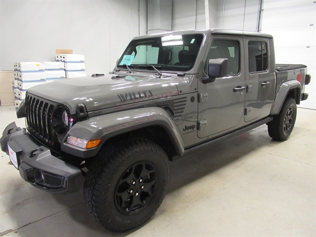 in Sting-Gray Clearcoat and Black Cloth, ***CLEAN CARFAX***, **NAVIGATION**, BLUETOOTH, ALL BOOKS AND KEYS, **BED LINER**, **REMOTE START**, **Back-Up Camera**, **ADAPTIVE CRUISE CONTROL**, **HEATED SEATS & STEERING WHEEL**, Gladiator Willys, 3.6L V6 24V VVT, 8-Speed Automatic, 4WD, Sting-Gray Clearcoat, Black Cloth, 115V Auxiliary Power Outlet, 220 Amp Alternator, 240 Amp Alternator, 4-Wheel Disc Brakes, 4-Wheel Drive Decal, 400W Inverter, 7.0`` Touch Screen Display, 700 Amp Maintenance Free Battery, 8 Speakers, 8.4`` Radio & Premium Audio Group, 8.4`` Touchscreen Display, 97 mph Maximum Speed Calibration, ABS brakes, Advanced Brake Assist, Advanced Safety Group, Air Conditioning w/Auto Temperature Control, Alpine Premium Audio System, AM/FM radio, Anti-Spin Differential Rear Axle, Apple CarPlay, Auto High Beam Headlamp Control, Auto-Dimming Rear-View Mirror, Automatic Headlamps, Auxiliary Switch Group, Auxiliary Switches, Black Grille, Black Trail Rated Badge, Blind Spot & Cross Path Detection, Body Color Fender Flares (2-Piece), Class IV Hitch Receiver, Cluster 7.0`` TFT Color Display, Cold Weather Group, Console Bin Task Light, Convenience Group, Daytime Running Lamp System, Deep Tint Sunscreen Windows, Electronic Stability Control, Emergency/Assistance Call, Enhanced Adaptive Cruise Control, Front Heavy Duty Red Accent Shock Absorbers, Full Speed Forward Collision Warning Plus, Google Android Auto, GPS Antenna Input, GPS Navigation, HD Radio, Heated Front Seats, Heated Steering Wheel, Heavy-Duty Engine Cooling, Integrated Center Stack Radio, Integrated Voice Command w/Bluetooth, Leather Wrapped Steering Wheel, LED Taillamps, Media Hub w/2 Charge Only USBs, Mold In Color Bumper w/Gloss Black, Off-Road Info Pages, Outside temperature display, ParkSense Rear Park Assist System, ParkView Rear Back-Up Camera, Power Heated Mirrors, Power Tailgate Lock, Protection Sill Rails, Quick Order Package 24W Willys, Radio: Uconnect 4C Nav w/8.4`` Display, Rear Heavy Duty Red Accent Shock Absorbers, Remote Keyless Entry, Roll-Up Tonneau Cover, Safety Group, SiriusXM Radio Service, SiriusXM Satellite Radio, Steering wheel mounted audio controls, Technology Group, Telescoping steering wheel, Traction control, Trailer Hitch Zoom, Trailer Tow Package, Universal Garage Door Opener, USB Host Flip, Wheels: 17`` x 7.5`` Black Aluminum w/Gray Pad, Willys, Willys Hood Decal.