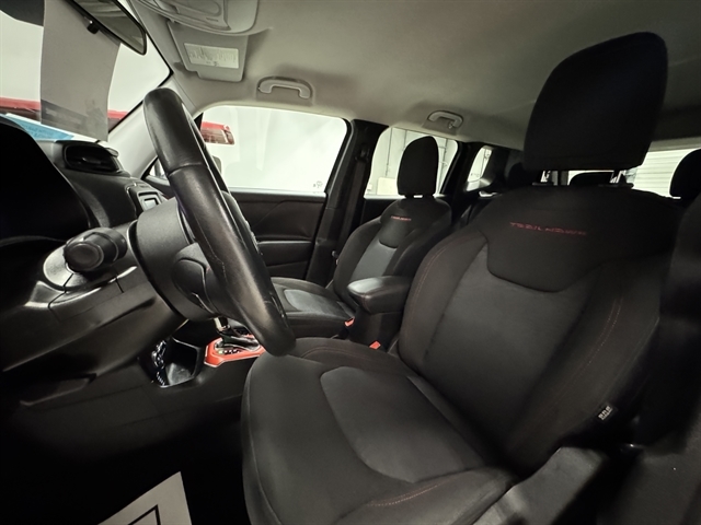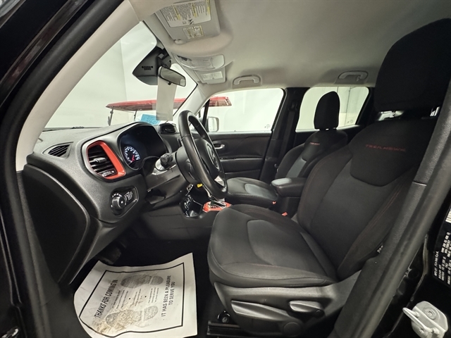 low miles, only 79117 miles, ***CLEAN CARFAX***, BLUETOOTH, ALL BOOKS AND KEYS, **Back-Up Camera**, Renegade Trailhawk, 2.4L I4 MultiAir, 9-Speed 948TE Automatic, 4WD, Black, Black Cloth, 4-Wheel Disc Brakes, 6 Speakers, ABS brakes, Aluminum Wheels, AM/FM radio: SiriusXM, Compass, Electronic Stability Control, Engine Oil Cooler, Front fog lights, Heated door mirrors, Outside temperature display, Overhead console, ParkView Rear Back-Up Camera, Quick Order Package 27E, Radio: Uconnect 5.0 AM/FM/BT, Remote keyless entry, Roof rack: rails only, Split folding rear seat, Spoiler, Steering wheel mounted audio controls, Telescoping steering wheel, Traction control.