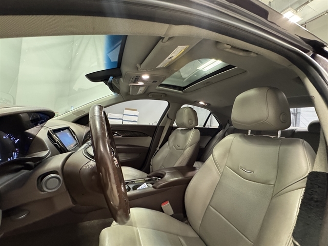 2014 Cadillac ATS 2.0L Turbo Luxury 4D Sedan **NAVIGATION**, **LOCAL TRADE IN**, **LEATHER**, **MOONROOF**, BLUETOOTH, ALL BOOKS AND KEYS, **REMOTE START**, **Back-Up Camera**, **HEATED SEATS & STEERING WHEEL**, 6-Speed Automatic, AWD, Majestic Plum Metallic, Light Platinum w/Brownstone Accents w/Leather Seating Surfaces, 17" x 8" Polished Aluminum Wheels, 4-Wheel Disc Antilock Brembo Fr Performance Brakes, ABS brakes, Adaptive Remote Start, Automatic temperature control, Bluetooth For Phone/Audio, Bose Premium Surround Sound 10-Speaker System, Cold Weather Package, Compass, CUE & Navigation, Driver & Front Passenger Seat Adjusters, Exterior Parking Camera Rear, Front & Rear Park Assist, Front dual zone A/C, Fully automatic headlights, Garage door transmitter, Heated door mirrors, Heated Driver & Front Passenger Seats, Heated Steering Wheel Rim, Leather Seating Surfaces, Memory Package, Memory seat, Navigation System, Outside temperature display, Power driver seat, Power Sunroof, Premium All-Weather Floor Mats, Remote keyless entry, Seating Package, SiriusXM & HD Audio System, Speed control, Split folding rear seat, Split-Folding Rear Seat, Steering wheel mounted audio controls, Telescoping steering wheel, Tilt steering wheel, Traction control. THIS VEHICLE IS BEING SOLD AS IS DUE TO AGE AND MILES. IT MAY QUALIFY FOR AN EXTENDED WARRANTY.