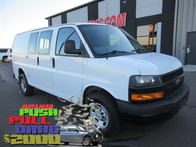 Express 2500 Work Van Cargo, 4.3L V6, 8-Speed Automatic with Overdrive, RWD, Summit White, Medium Pewter Vinyl, 4-Wheel Disc Brakes, 8-Point Digital Compass, ABS brakes, AM/FM Stereo w/MP3 Player, Cruise Control, Driver Convenience Package, Exterior Parking Camera Rear, Heated door mirrors, Power door mirrors, Preferred Equipment Group 1WT, Rear Park Assist, Side Blind Zone Alert, Tilt Steering Wheel, Traction control.