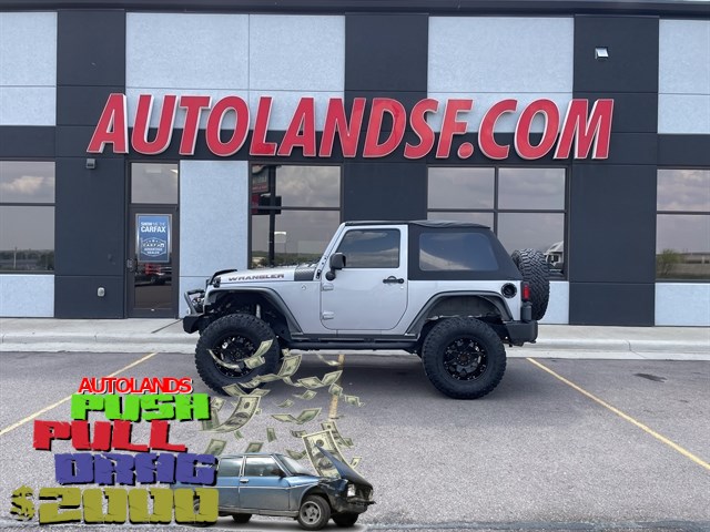 **LOCAL TRADE IN**, **CUSTOM ALLOY WHEELS**, **CUSTOM SOUND SYSTEM**, **MANY CUSTOM ADDITIONS**, Wrangler Sport, 3.6L V6 24V VVT, 5-Speed Automatic, 4WD, Billet Silver Metallic Clearcoat, Black Cloth, 4-Wheel Disc Brakes, ABS brakes, Air Conditioning, Auto-Dimming Mirror w/Reading Lamp, Chrome/Leather Wrapped Shift Knob, Connectivity Group, Electronic Stability Control, Front 1-Touch Down Power Windows, Leather Wrapped Steering Wheel, Power Convenience Group, Power Heated Mirrors, Power Locks, Quick Order Package 24S, Remote Keyless Entry, Security Alarm, Speed control, Sunrider Soft Top, Tachometer, Tilt steering wheel, Tire Pressure Monitoring Display.