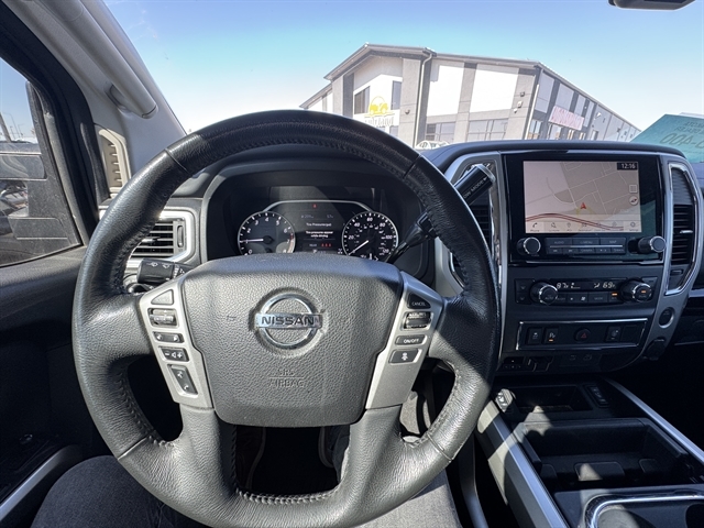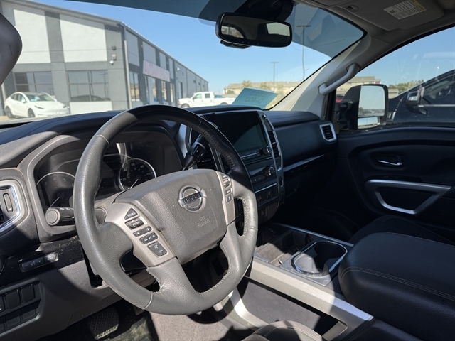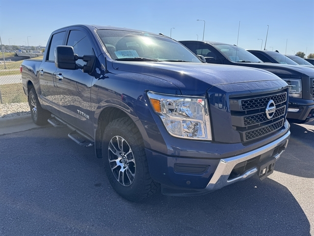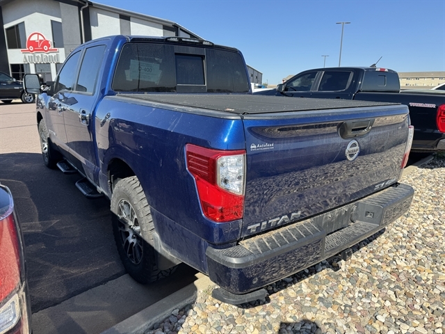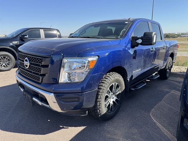 2021 Nissan Titan SV 4D Crew Cab with Headrest DVD ***CLEAN CARFAX***, **NAVIGATION**, **LOCAL TRADE IN**, **REAR DVD**, BLUETOOTH, ALL BOOKS AND KEYS, **REMOTE START**, **Back-Up Camera**, **ADAPTIVE CRUISE CONTROL**, **HEATED SEATS**, Titan SV, 4D Crew Cab, 5.6L V8 DOHC 32V 400hp, 4WD, Deep Blue Pearl Metallic, Black w/Cloth Seat Trim, 110V Outlet in Bed, 4-Wheel Disc Brakes, ABS brakes, Active Cruise Control, All Season Floor Mats, AM/FM radio: SiriusXM, Auto High-beam Headlights, Blind Spot Warning, Dual Zone Automatic HVAC, Electronic Locking Tailgate, Front & Rear Parking Sensors, Fully automatic headlights, Heated door mirrors, Heated Front Captain's Chairs, Intelligent Key System, LED Tailgate Area Illumination, Navigation System, NissanConnect featuring Apple CarPlay and Android Auto, Off Road Protection Package, Outside temperature display, Power door mirrors, Power Sliding Rear Window w/Defogger, Radio: NissanConnect w/Navigation, Rain Sensing Wipers, Rear HVAC Vents, Rear Seat Entertainment (DISC), Rear window defroster, Remote Engine Start on Key Fob, Remote keyless entry, Speed control, Split folding rear seat, Spray-On Bedliner, Steering wheel mounted audio controls, SV Convenience Package, SV Tow Package, SV Utility Package, Traction control, Traffic Sign Recognition (TSR), Trailer Brake Controller, Trailer Light Check Function On Key Fob, Universal Garage Door Opener, Utilitrack System w/4 Tie-Down Cleats, Wheels: 18" x 8" Silver Painted Alloy. *THIS VEHICLE COMES WITH TWO KEYS, FULL SET OF FLOOR MATS, OWNERS MANUAL AND A FULL TANK OF GAS! A LIMITED 3 MONTH 3,000 MILE WARRANTY IS INCLUDED. SOME VEHICLES MAY HAVE REMAINING FACTORY WARRANTY – CONTACT US FOR DETAILS. AUTOLAND DOES PROVIDE A COMPLETE CARFAX HISTORY ON ALL VEHICLES BY REQUEST. Located in Sioux Falls SD, and serving Mitchell, Yankton, Brookings, Dell Rapids, Lennox, Brandon, Harrisburg, Canton, Hartford and surrounding areas.