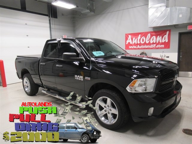 Autoland - SD is offering this 2014 Ram 1500 Express, in Black Clearcoat and Black Cloth, BLUETOOTH, ALL BOOKS AND KEYS, 1500 Express, 4D Quad Cab, HEMI 5.7L V8 Multi Displacement VVT, 6-Speed Automatic, 4WD, Black Clearcoat, Black Cloth, 1-Year SiriusXM Radio Service, 20`` x 8.0`` Aluminum Wheels, 40/20/40 Split Bench Seat, Active Grille Shutters, Body Color Front Fascia, Body Color Grille, Body Color Rear Bumper w/Step Pads, Brake assist, Carpet Floor Covering, Cloth 40/20/40 Bench Seat, Delete Class IV Receiver Hitch, Delete Spray In Bedliner, Fog Lamps, For More Info, Call 800-643-2112, Front & Rear WeatherTech Floor Mats, Front Armrest w/Three Cupholders, Popular Equipment Group, Quick Order Package 25C Express, Radio: Uconnect 3.0 AM/FM, Rear Folding Seat, Remote Keyless Entry w/All-Secure, SIRIUSXM Satellite Radio.