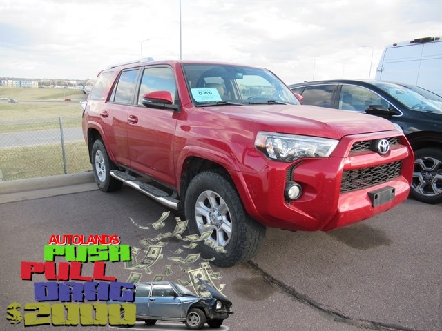 **NAVIGATION**, **LOCAL TRADE IN**, **REAR DVD**, **LEATHER**, **MOONROOF**, BLUETOOTH, ALL BOOKS AND KEYS, **Back-Up Camera**, **HEATED SEATS**, **Dual Headrest DVD`s**, 4Runner SR5 Premium, 4.0L V6 SMPI DOHC, 5-Speed Automatic with Overdrive, 4WD, Barcelona Red Metallic, Sand Beige Leather, 4-Wheel Disc Brakes, 8 Speakers, ABS brakes, Aluminum Wheels, AM/FM radio: SiriusXM, Auto-Dimming Rear-View Mirror, Body Color Heated Mirrors, CD player, Compass, Electronic Stability Control, Exterior Parking Camera Rear, Front fog lights, Garage Door Opener, Garage door transmitter: HomeLink, Heated door mirrors, Heated Front Bucket Seats, Leather Shift Knob, Leather steering wheel, Navigation System, Outside temperature display, Overhead console, Power driver seat, Power passenger seat, Power Tilt & Slide Moonroof w/Sunshade, Premium Package w/Softex, Radio: Entune Premium Audio w/Navigation, Remote keyless entry, Roof rack: rails only, Softex Synthetic Leather Seat Trim, Split folding rear seat, Spoiler, Steering wheel mounted audio controls, Telescoping steering wheel, Traction control.