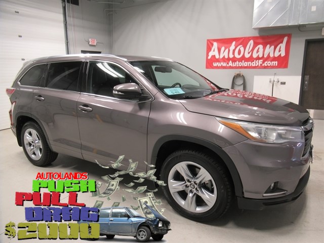 Autoland - SD is offering this 2016 Toyota Highlander Limited, **NAVIGATION**, **LEATHER**, **MOONROOF**, BLUETOOTH, **Back-Up Camera**, **QUAD SEATS**, **POWER LIFTGATE**, **HEATED/COOLED SEATS**, Highlander Limited, 3.5L V6 DOHC Dual VVT-i 24V, 6-Speed Automatic Electronic with Overdrive, AWD, Predawn Gray Mica, Leather, 12 Speakers, 3rd row seats: split-bench, 4-Wheel Disc Brakes, ABS brakes, AM/FM radio: SiriusXM, Auto-dimming Rear-View mirror, Automatic temperature control, CD player, Electronic Stability Control, Exterior Parking Camera Rear, Front dual zone A/C, Front fog lights, Fully automatic headlights, Heated door mirrors, Heated/Ventilated Front Bucket Seats, Leather Shift Knob, Memory seat, Navigation System, Outside temperature display, Overhead console, Perforated Leather Seat Material, Power driver seat, Power Liftgate, Power moonroof, Power passenger seat, Radio: Entune Premium JBL Audio w/Nav & App Suite, Rear air conditioning, Remote keyless entry, Spoiler, Steering wheel mounted audio controls, Telescoping steering wheel, Traction control, Wheels: 19`` 5-Spoke Chromtec Alloy.