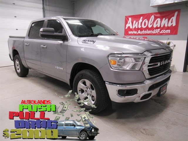 Autoland - SD is offering this 2020 Ram 1500 Big Horn/Lone Star, ***CLEAN CARFAX***, 1500 Big Horn/Lone Star, 4D Crew Cab, HEMI 5.7L V8 Multi Displacement VVT, 8-Speed Automatic, 4WD, Billet Silver Metallic Clearcoat, Diesel Gray/Black Cloth, 115V Auxiliary Power Outlet, 115V Auxiliary Rear Power Outlet, 2 USB Full Function/Charge Only Media Hub, 2nd Row In Floor Storage Bins, 3.92 Rear Axle Ratio, 33 Gallon Fuel Tank, 4 Adjustable Cargo Tie-Down Hooks, 400W Inverter, ABS brakes, Add Class IV Receiver Hitch, Air Conditioning ATC w/Dual Zone Control, Aluminum Wheels, Auto-Dimming Rear-View Mirror, Bed Utility Group, Big Horn Badge, Big Horn IP Badge, Big Horn Level 2 Equipment Group, Black Premium Power Mirrors, Black Trailer Tow Power Mirrors, Class IV Receiver Hitch, Compass, Dampened Tailgate, Deployable Bed Step, Electronic Stability Control, Foam Bottle Insert (Door Trim Panel), Glove Box Lamp, Heated door mirrors, Heated Front Seats, Heated Steering Wheel, Illuminated entry, Low tire pressure warning, ParkSense Front/Rear Park Assist w/Stop, ParkView Rear Back-Up Camera, Pick-Up Box Lighting, Power 4-Way Driver Lumbar Adjust, Power 8-Way Driver Seat, Power Adjustable Pedals, Quick Order Package 25Z Big Horn, Radio: Uconnect 4 w/8.4`` Display, Rear Dome w/On/Off Switch Lamp, Rear Power Sliding Window, Rear Window Defroster, Remote keyless entry, Security Alarm, SiriusXM Satellite Radio, Spray In Bedliner, Sun Visors w/Illuminated Vanity Mirrors, Traction control, Trailer Brake Control, Trailer Tow Group, Universal Garage Door Opener.
