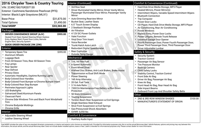 2016 Chrysler Town & Country Touring 4D Passenger Van