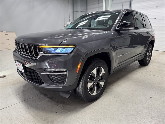 low miles, only 23269 miles, ***CLEAN CARFAX***, **NAVIGATION**, **LEATHER**, **MOONROOF**, BLUETOOTH, ALL BOOKS AND KEYS, **REMOTE START**, **Back-Up Camera**, **POWER LIFTGATE**, **ADAPTIVE CRUISE CONTROL**, **HEATED SEATS & STEERING WHEEL**, **APPLE CARPLAY/ ANDROID AUTO**, Grand Cherokee 4xe Base, 2.0L I4 DOHC, 8-Speed Automatic, 4WD, Baltic Gray Metallic Clearcoat, Global Black Leather, 10 SPEAKER AUDIO, 10.1`` Touchscreen Display, 4-Wheel Disc Brakes, 4G LTE Wi-Fi Hot Spot, ABS brakes, AM/FM radio: SiriusXM with 360L, Apple CarPlay, Audio memory, Auto High-beam Headlights, Automatic temperature control, Compass, Connected Travel & Traffic Services, Connectivity - US/Canada, Disassociated Touchscreen Display, Dual-Pane Panoramic Sunroof (DISC), Electronic Stability Control, Front dual zone A/C, Front fog lights, Front Passenger Interactive Display, Garage door transmitter, Google Android Auto, GPS Antenna Input, GPS Navigation, HD Radio, Heated door mirrors, Heated front seats, Heated rear seats, Heated steering wheel, Integrated Center Stack Radio, Integrated Voice Command w/Bluetooth, Memory seat, Outside temperature display, Overhead console, ParkView Rear Back-Up Camera, Power Liftgate, Pur Wrapped Instrument Panel, Quick Order Package 27F, Radio: Uconnect 5 Nav w/10.1`` Display, Remote keyless entry, Roof rack: rails only, SiriusXM Radio Service, Speed-Sensitive Wipers, Split folding rear seat, Spoiler, Steering wheel mounted audio controls, Telescoping steering wheel, Traction control, USB Host Flip, Wheels: 18`` x 8`` Fully Painted Aluminum.